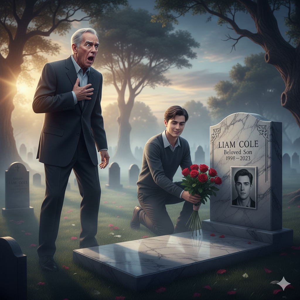 El padre fue a visitar la tumba de su hijo… y se impactó al verlo poniendo flores en su propia tumba.
