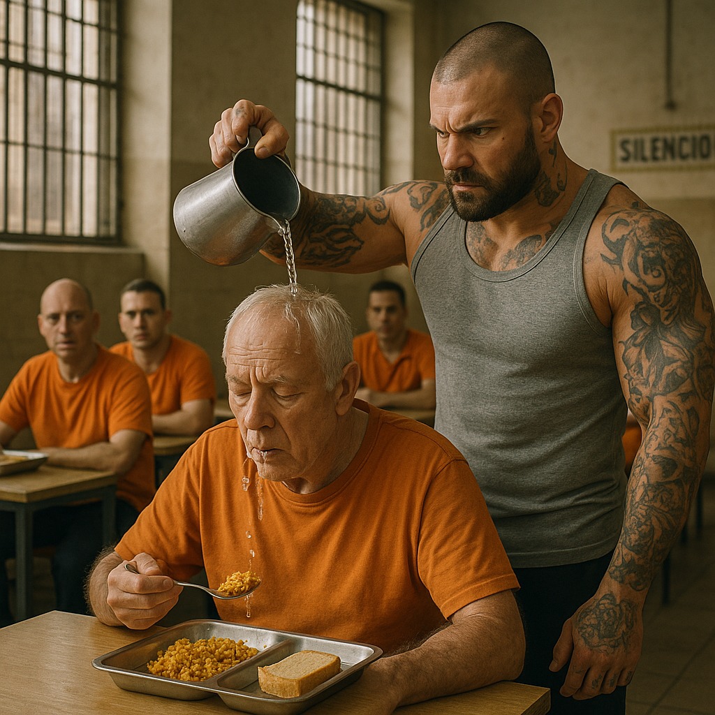 El anciano caminaba con paso firme, apoyándose levemente en la pared, sin mostrar raso de fatiga, en el comedor. Se sentó solo, tomó su bandeja y comenzó a comer con lentitud, disfrutando cada bocado como si nada hubiera sucedido. El narrador cerraría la escena con una voz grave, casi poética. En un lugar donde miedo manda y la violencia dicta las reglas, un viejo silencioso recordó al mundo que los monstruos no siempre rugen.
