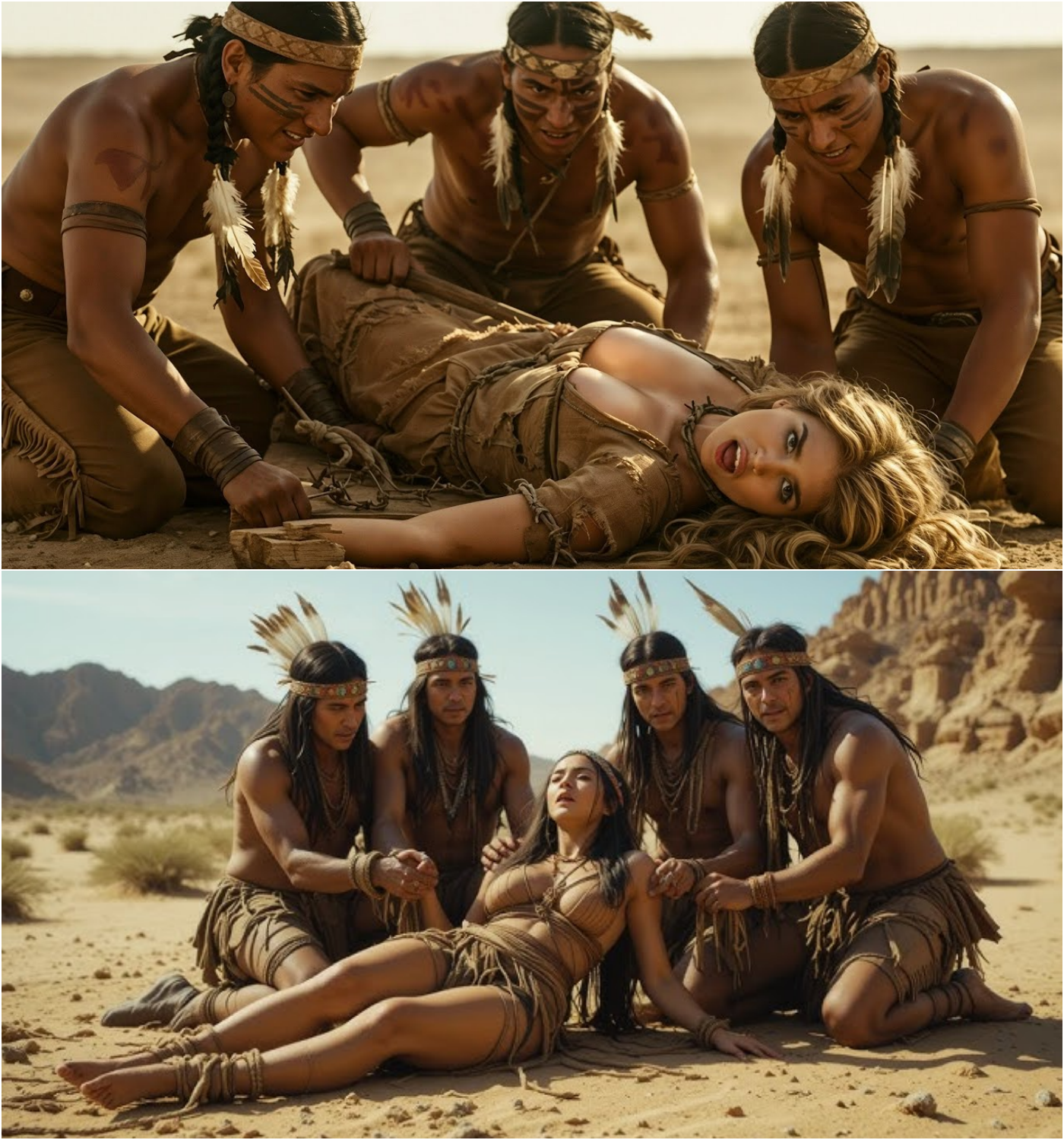Cuando el agotamiento se volvió insoportable, los apaches montaron campamento. Las mujeres fueron atadas a los postes de madera improvisados. Nadie les dio agua. Nadie les habló. Nadie les explicó su destino.