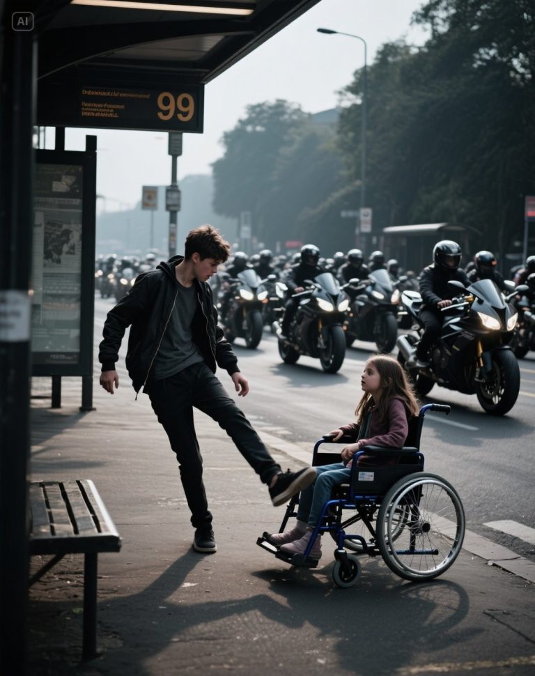 “¡Muévete, lisiada!” gritó un abusador, pateando a una niña discapacitada al suelo — entonces 99 motociclistas vieron lo que sucedía y apagaron sus motores…