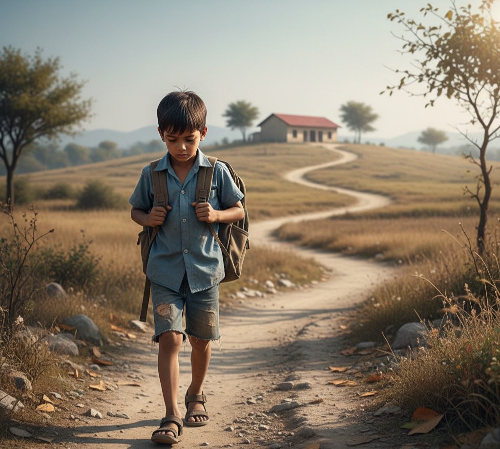 El camino a la escuela es largo. Al principio, cuando amanece, todo es hermoso: el aire fresco, los pájaros cantando, el cielo pintándose de naranja. Pero luego el sol calienta, el polvo se levanta y los pies duelen. A veces, cuando pasa algún camión, me cubro la cara con el brazo para que no me llene de tierra.