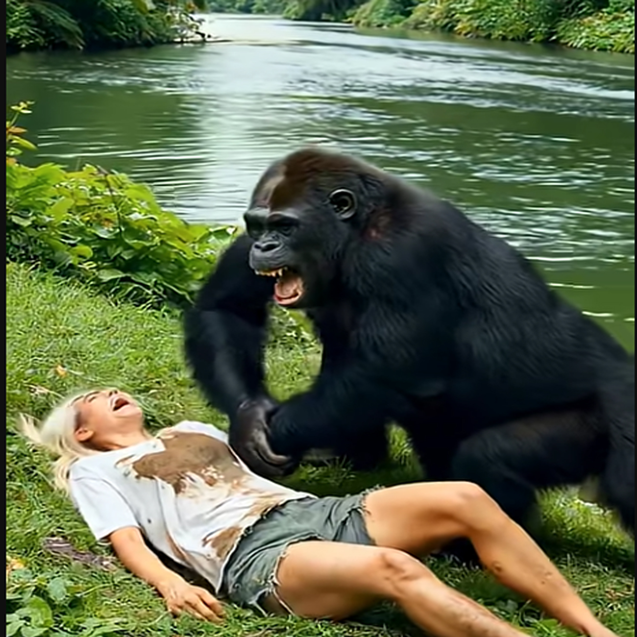 “¡Por favor, ayúdenme!”, gritó la mujer, su voz quebrándose de puro terror mientras las enormes manos del gorila se cerraban sobre sus hombros. En cuestión de segundos, lo que había comenzado como un tranquilo picnic junto al río se convirtió en una escena sacada de una pesadilla.