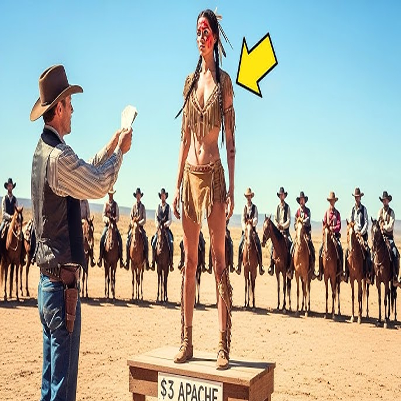 En ella, atada con cuerdas de cáñamo, estaba Nisoni, una joven apache de la tribu Chirica. Su rostro, pintado con ocre rojo y negro no mostraba miedo, solo desprecio. Sus ojos, oscuros como la noche sin luna, desafiaban a cada hombre que la miraba. El subastador, un vaquero llamado Yoojo de Cuervo Malone, escupió tabaco al suelo y alzó la voz ronca.