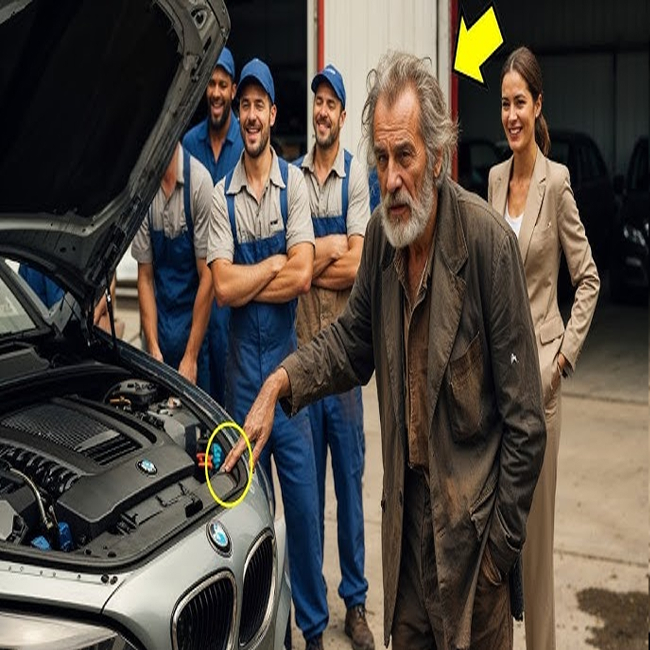 Pero después de dos horas de intentos, la máquina permanecía silenciosa, como una tumba de lujo. José había observado toda la escena desde lejos, de pie cerca de la entrada, con esa paciencia infinita que solo quien ha vivido mucho puede permitirse. Sus ojos siguieron cada movimiento de los jóvenes mecánicos y lentamente, imperceptiblemente, comenzó a sonreír.